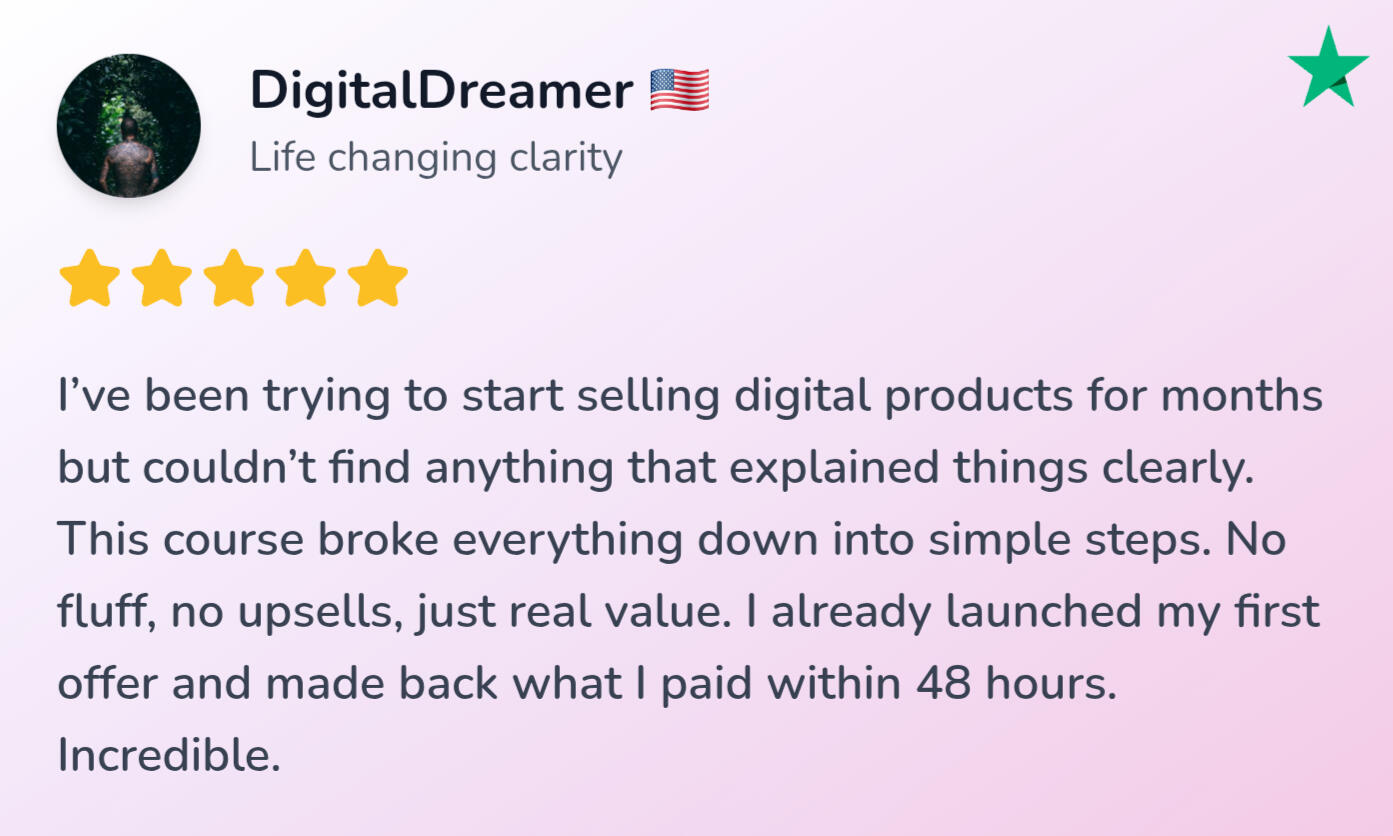 And now, it’s yours — so you don’t have to go through all the confusion I did.That’s the system I packaged — so you can skip the struggle and launch your own in 1 day.
